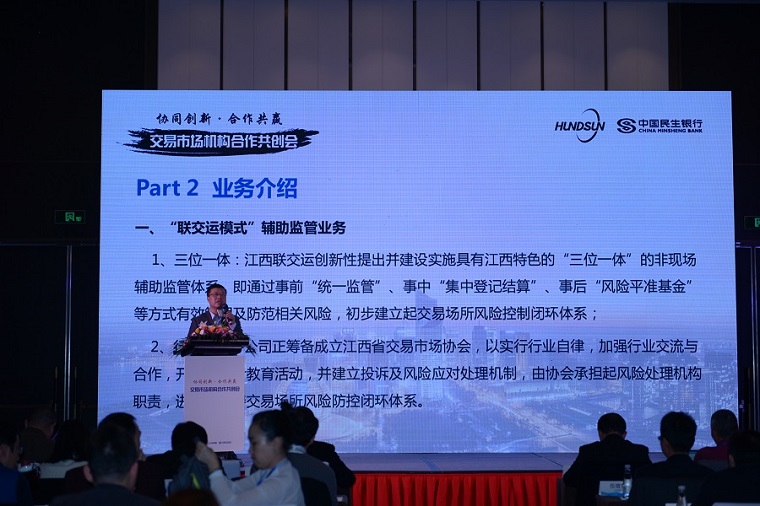 會上,江西聯(lián)交運總經(jīng)理劉祖國就江西省場外交易市場監(jiān)管清算創(chuàng)新模式進(jìn)行了主題演講,得到了與會人員的熱烈反響和高度認(rèn)可。