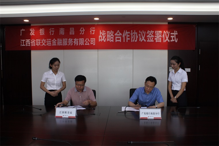 2016年8月10日,江西省聯(lián)交運金融服務(wù)有限公司(以下簡稱“江西聯(lián)交運”)與廣發(fā)銀行股份有限公司南昌分行(以下簡稱“廣發(fā)銀行南昌分行”)舉行戰(zhàn)略合作協(xié)議簽約儀式。廣發(fā)銀行南昌分行副行長趙峰林、公司部總經(jīng)理黃佳歡、營業(yè)部總經(jīng)理王海及江西聯(lián)交運總經(jīng)理劉祖國等出席儀式。