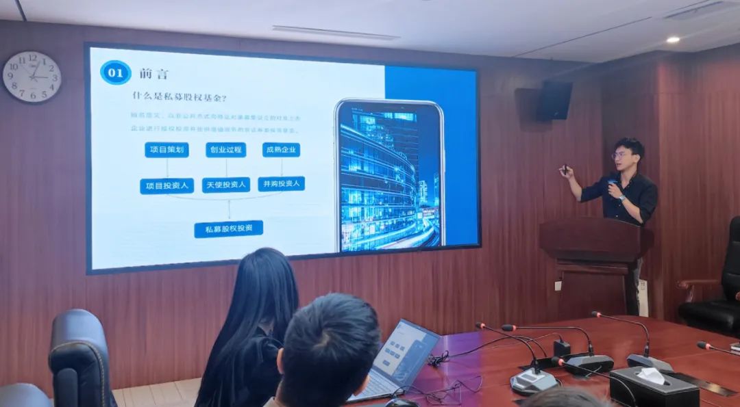 會上,王瑋以基礎(chǔ)知識講解和案例介紹相結(jié)合方式,分別從私募股權(quán)基金的起源與發(fā)展、運作模式與特點、常用的估值方式以及其在經(jīng)濟中發(fā)揮的作用等多方面進行詳細介紹。讓大家對私募股權(quán)基金的基礎(chǔ)結(jié)構(gòu)、股權(quán)投資“募投管退”及當前國內(nèi)市場的發(fā)展趨勢和社會經(jīng)濟效益等有了更系統(tǒng)和清晰的認識了解。在分享介紹后,與會人員并結(jié)合各自學習工作經(jīng)驗就部分重點內(nèi)容和問題進行了補充發(fā)言與討論交流。
